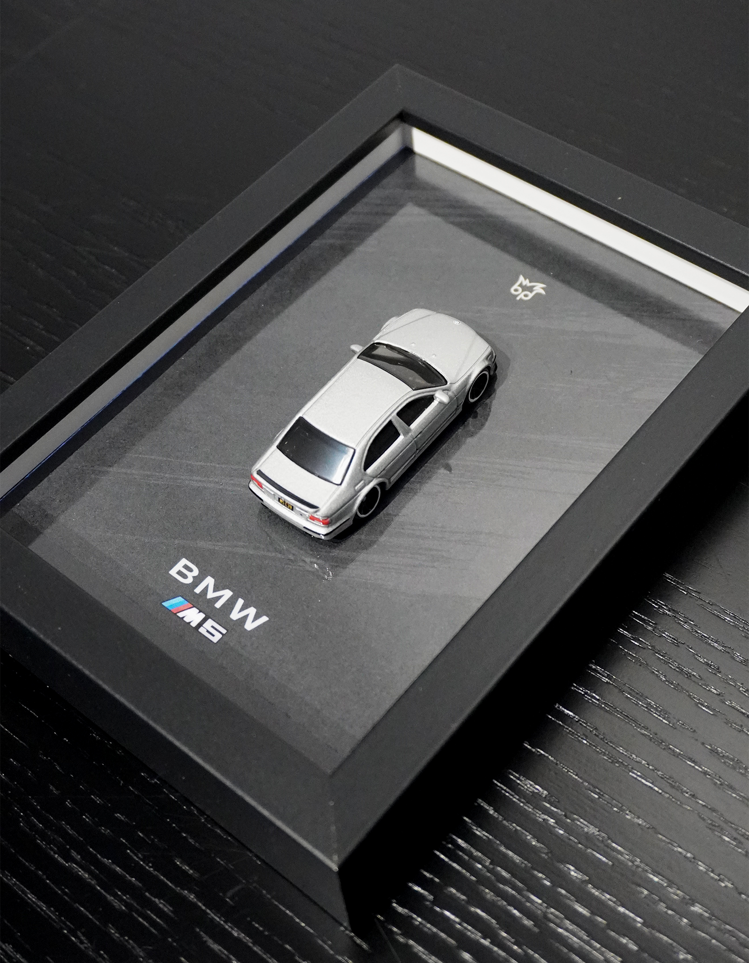 Ramka BMW M5 E39 to ukłon w stronę jednego z najbardziej kultowych sedanów w historii motoryzacji. Klasyka V8 zamknięta w eleganckiej ramce 3D, idealna dla fanów BMW, kolekcjonerów diecastów i miłośników legendarnych modeli serii M.