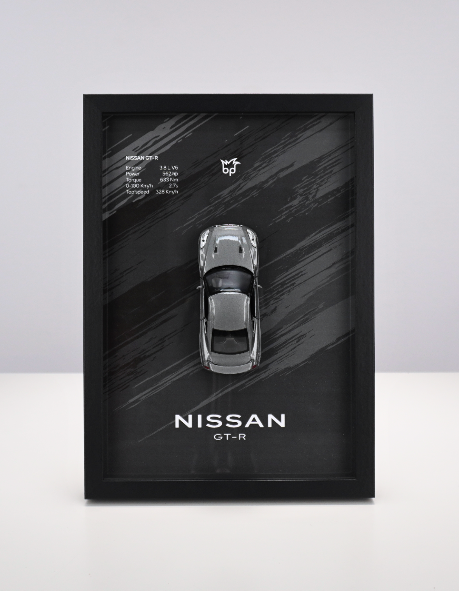 Ramka Nissan GT-R w metalicznym szarym kolorze to hołd dla legendy JDM. Idealna dla fanów Nissan GT-R, kolekcjonerów Hot Wheels i miłośników supersamochodów o sportowym charakterze.