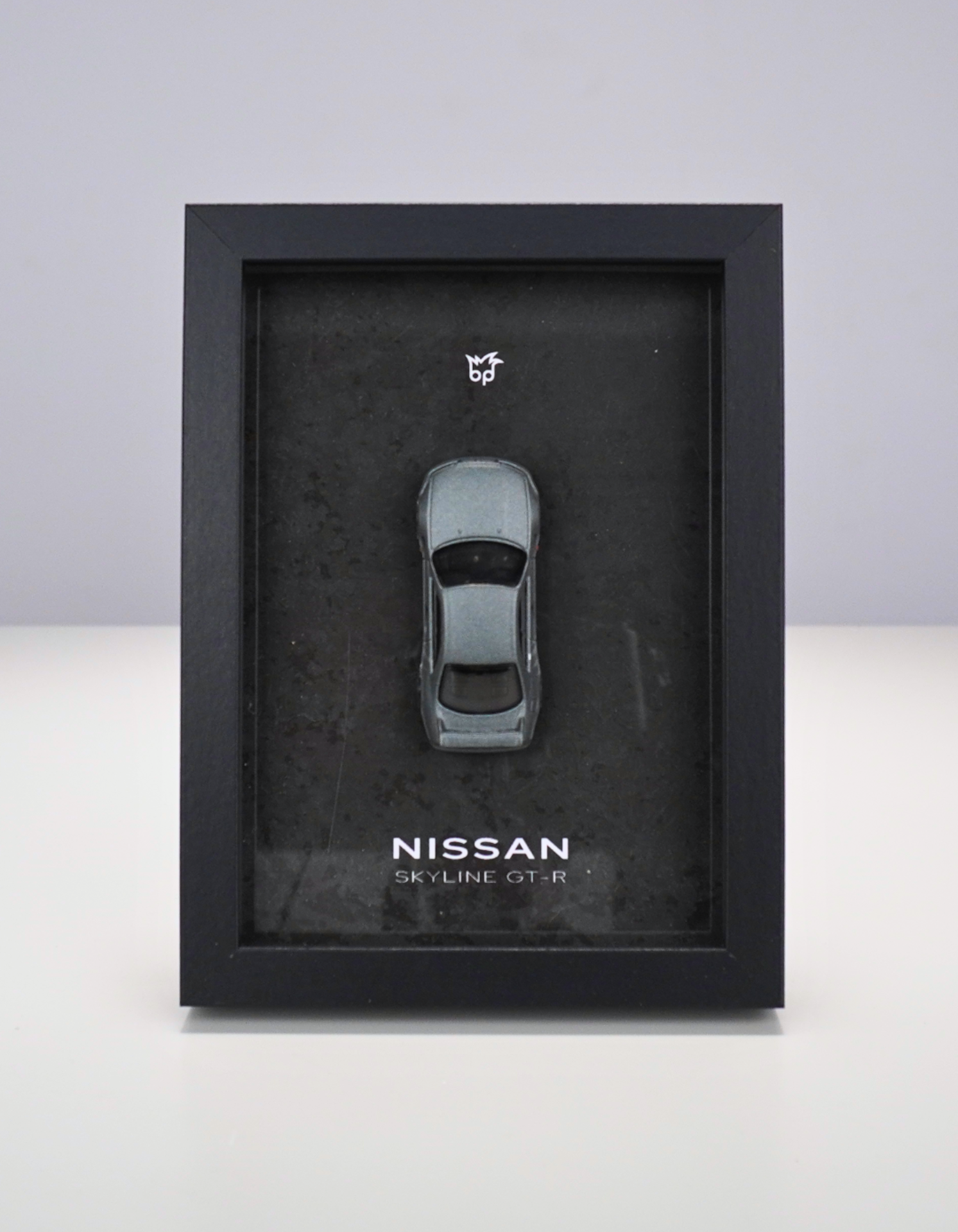 Nissan Skyline GT-R to symbol osiągów i perfekcyjnej inżynierii. Słynny z napędu AWD, turbodoładowania i dominacji w motorsporcie, stał się jednym z najbardziej pożądanych samochodów JDM wszech czasów. Teraz możesz mieć jego miniaturową wersję w elegancyjnej, trójwymiarowej ramce.